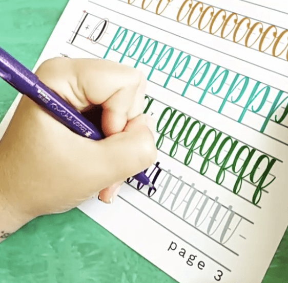 The paper’s position and angle and how the hand rests on the paper are critical. Some will find it comfortable to rotate the paper to find the best way to create the letters.